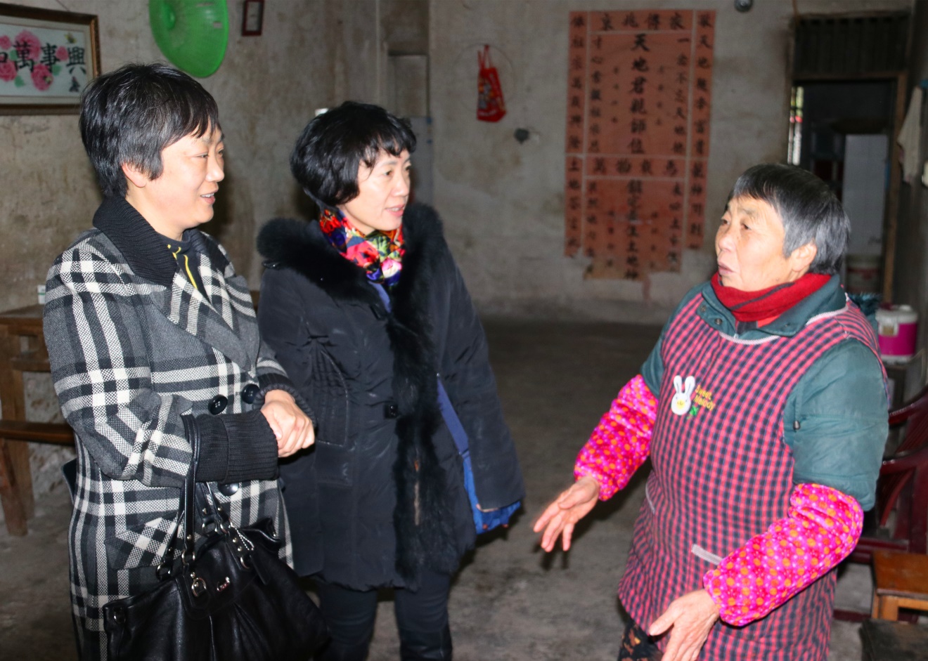 (公司专职组织员成春、党政办主任梁小梅与贫困户进行交谈,了解贫困户具体困难)