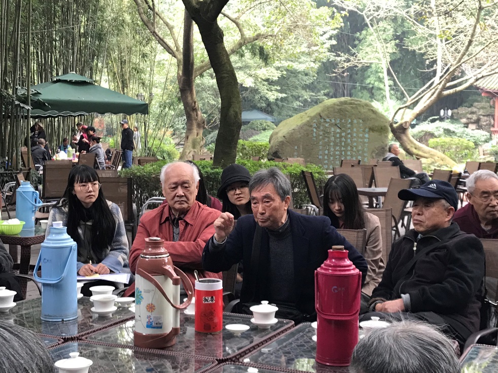 初冬时节,寒风阵阵,望江公园翠绿依旧。公司2019级硕士第二党支部的党员同志提前到达座谈会会场,协助公司老师布置好茶桌,公司的退休教师也陆续到达。10点30分,退休教师与党员员工座谈会正式开始,退休教职工干部吴茂楠老师介绍了到场各位退休老教师的简况及学术专长,并说明了本次座谈会主题及意义,即贯彻落实习总书记讲话精神,“不忘初心,牢记使命”,围绕新一代青年人的学习与成长,进行集体或个别的指导与探讨,希望助力青年学子学有所成,贡献社会。