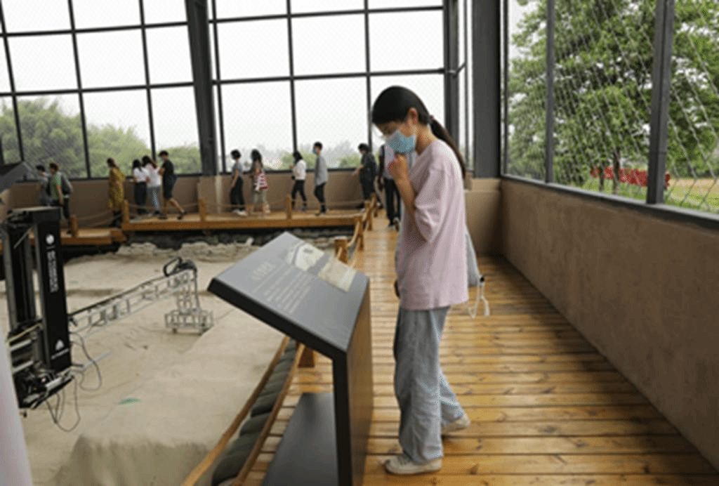本次活动的高潮是中外员工一起走进三星堆遗址考古现场,参观正在作业的挖掘坑。能够如此近距离地去见证这些神秘文物的出土过程让每一位员工都兴奋不已。大家热情地与讲解老师交流,渴望解锁更多关于这片神奇土地的未知秘密。