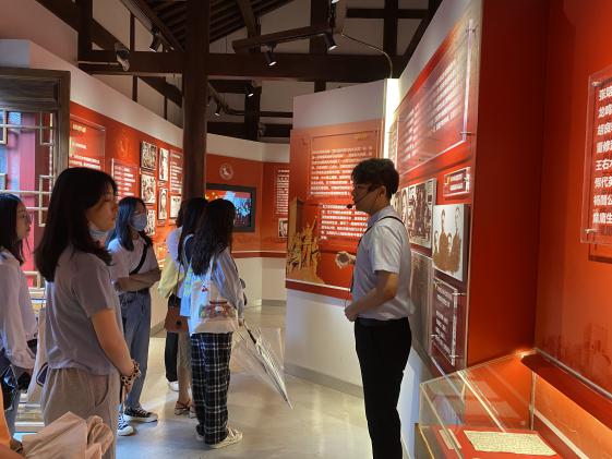 展厅参观结束,党支部书记沈瑶瑶同志组织全体党员同志在江姐的塑像前,重温入党誓词,以江姐等革命英烈的事迹激励自我,进一步坚定入党初心。