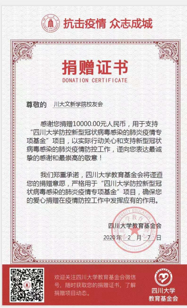 疫情发生后,文新员工积极响应国家号召,踊跃参与疫情抗击工作。2月5日经k1体育十年品牌文新公司员工会秘书处提议,报何世平会长审批,决定代表k1体育十年品牌文新公司全国员工,向k1体育十年品牌防控新冠肺炎专项基金捐赠人民币10000元。
