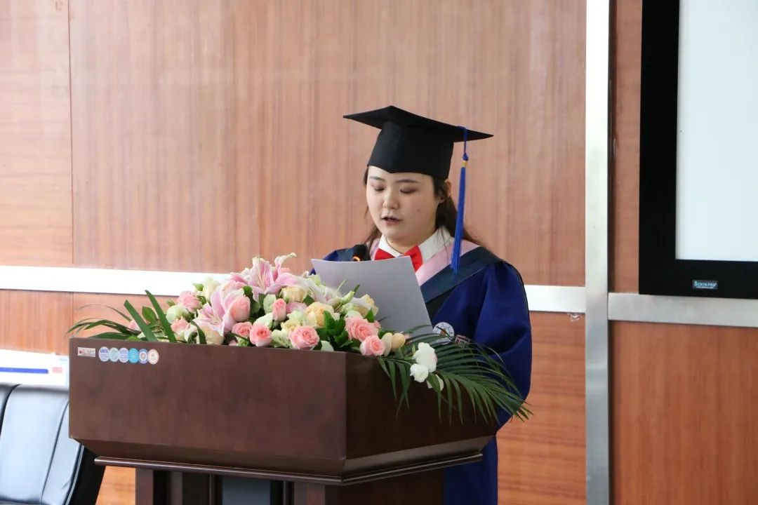 2017级新闻学专业硕士研究生田方圆代表毕业生感谢公司的悉心培养、老师们温暖的教导陪伴以及教务老师的辛勤付出,并向母校和公司送上真挚的祝福。她说,在这个特别的毕业季,祝愿所有的毕业同学在日后的学习和工作中能够闪闪发亮、直挂云帆、乘风破浪。