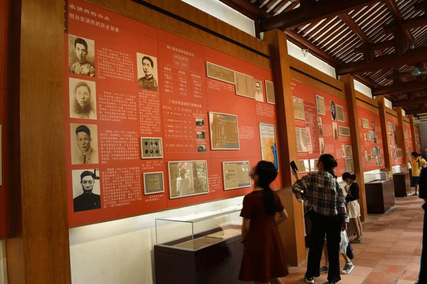 游客认真阅读农讲所创办历史背景