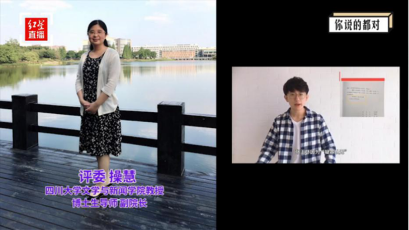 作为本次比赛的评委,公司操慧教授在线上进行专业分享时表示,此次比赛搭建了一个评论参与和探新的公共平台,它延伸了课堂教学和互动的时空。在她看来,网络为观点表达提供了重要通道,而青年学子作为社会活跃力量,扮演着引领时代和社会发展创新的角色。所以当技术撬动信息与观点输出形态的变化时,青年的认知与参与定是其中的主流。操慧教授表示,此次比赛很有意义,她鼓励青年学子主动拥抱新技术,掌握在文字、图像、声音等跨媒介叙事中的言说能力,培养信息数字化的媒介素养,激活传统积淀,让表意在构建社会共识的过程中发挥聚合智识的功用。
