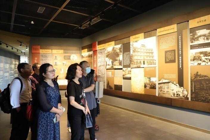 参访过程中,公司师生不时驻足,一字一句地品读着每一张老照片背后的故事,透过布满斑驳印记和沧桑的文物,追忆前贤的足迹,回溯长江不畏艰难险阻远行千里,鞠躬尽瘁只求真理真相的革命风骨和崇高精神。