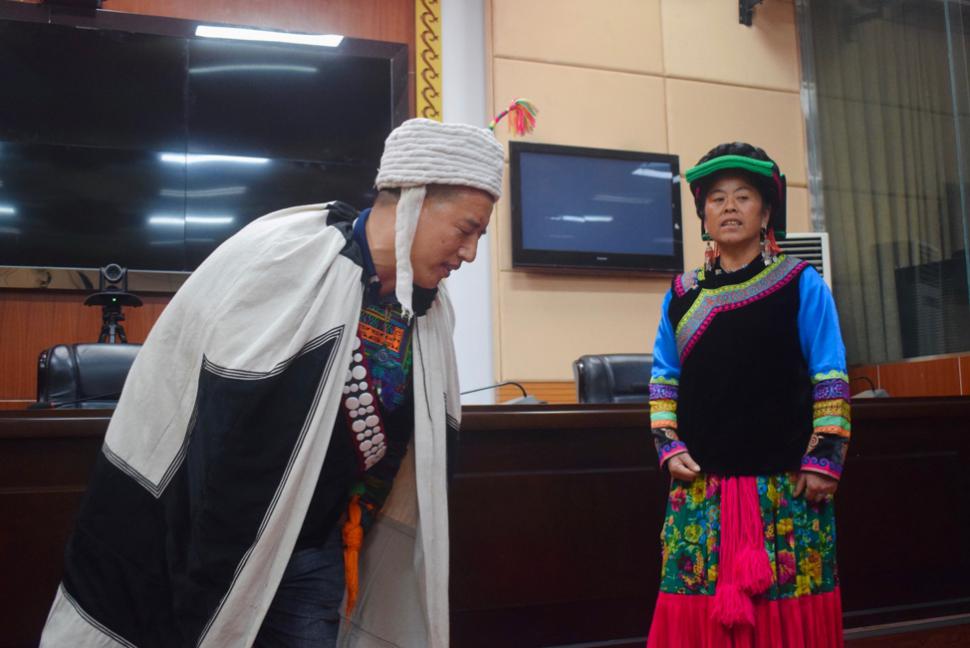 甘洛县彝学会成员为师生带来“情歌对唱”精彩表演
