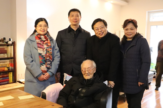 2021年元宵节,文学与新闻公司党委书记古立峰教授、经理李怡教授、副经理操慧教授、工会主席罗梅研究员代表公司探望慰问公司退休教授、百岁老人陶道恕先生,陶老接受了公司新闻中心特别专访,分享了自己治学教书的感悟。