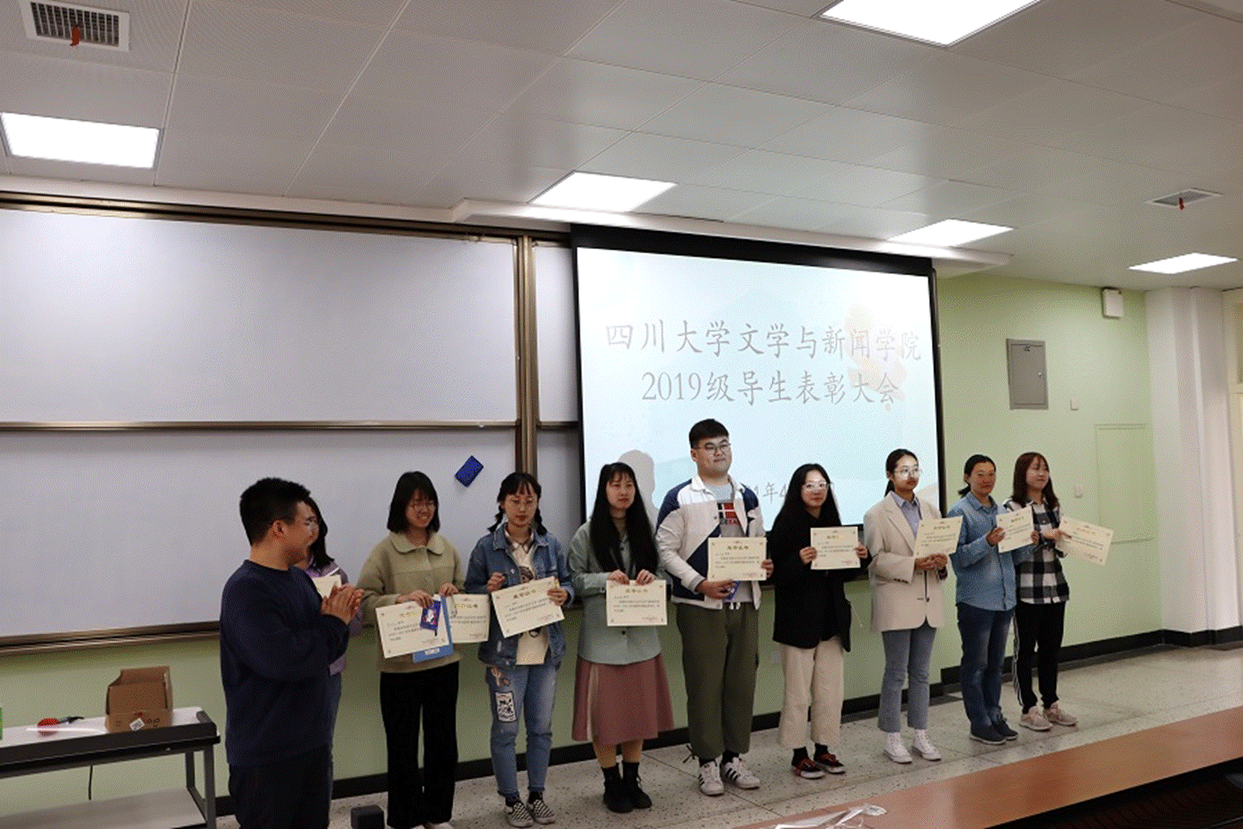 4月13日下午,公司2019级导生表彰大会在江安校区第一教学楼B座301举行。2020级本科生辅导员胡余龙老师、兼职辅导员王一冰老师等嘉宾出席大会,2019级全体导生参加本次大会。