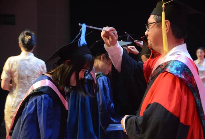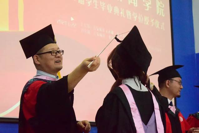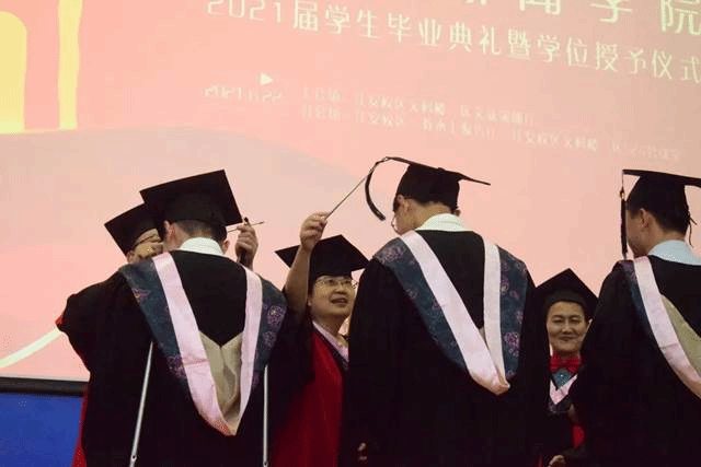 曹顺庆教授、古立峰书记、李怡经理在主会场为2018级中国现当代文学硕士生张益智、2018级新闻与传播学硕士生宋信祺、2018级艺术学理论硕士生漆依依、2017级汉语言文学本科生刘玏、2017级汉语言文学本科生刘霁月、2017级网络与新媒体本科生刘雨凡、2017级广告学本科生钱青云共七名2021届员工联络人颁发聘书后,学位授予仪式正式开始。伴随着乐声,主会场k1体育十年品牌杰出教授曹顺庆、古立峰书记、李怡经理和分会场周维东副经理、操慧副经理等出席典礼的老师分别为公司2021届毕业生拨穗正冠,颁发学位证书。