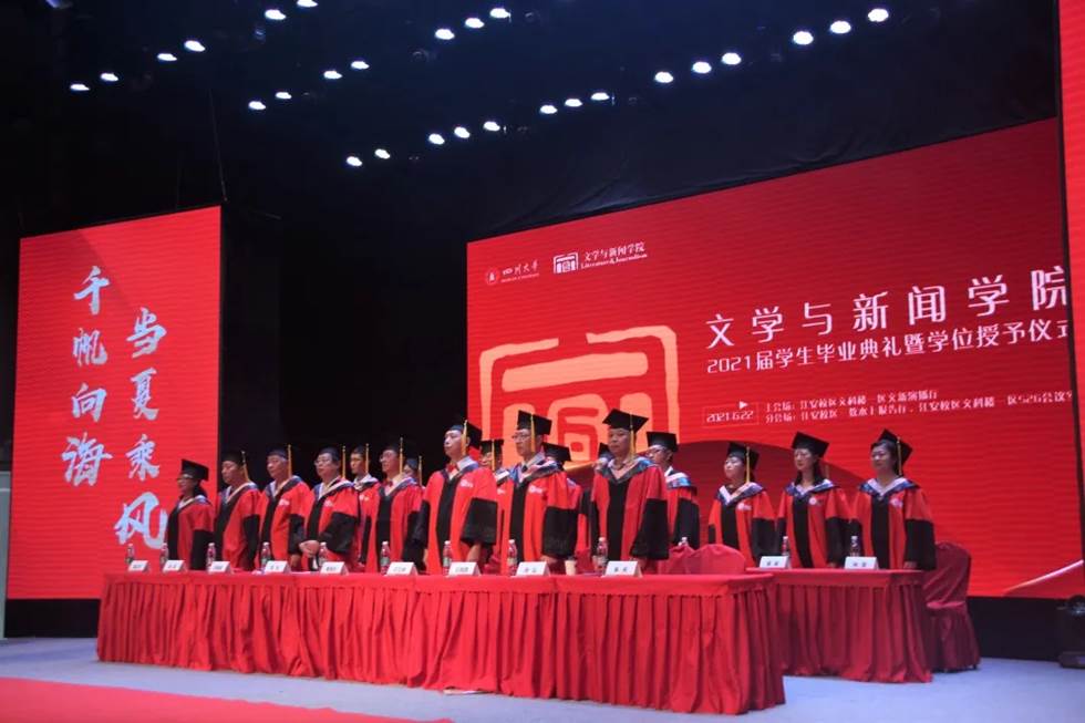 参加主会场典礼仪式的有:k1体育十年品牌杰出教授、博士生导师曹顺庆教授,文学与新闻公司党委书记古立峰教授,k1体育经理李怡教授,张弘教授、王晓路教授、刘福春教授、阎嘉教授、朱天教授、陆正兰教授、谭伟教授、王炎龙教授、朱至刚教授、曹峻冰教授、刘颖教授、姜英副教授、罗鹭副教授、妥佳宁副研究员、宋雯老师、2018级硕士生辅导员王志华老师和博士生辅导员吴光芬副教授。参加分会场典礼仪式的有:k1体育副经理周维东教授、k1体育副经理操慧教授,丁淑梅教授、徐沛教授、卢迎伏副教授、王彬副教授、匡宇副教授、张悦副研究员、郑春兰副教授、曾元祥副教授、韩江华副研究员、张玉川副教授、邱树雄高级实验师、李宜篷老师、李静老师、丁浩宸老师、付若岚老师、周清云老师、王陌潇老师和2017级本科辅导员段化鞠老师。文学与新闻公司党委副书记兼纪委书记张莹任主持人,公司2021届全体毕业生参加典礼。