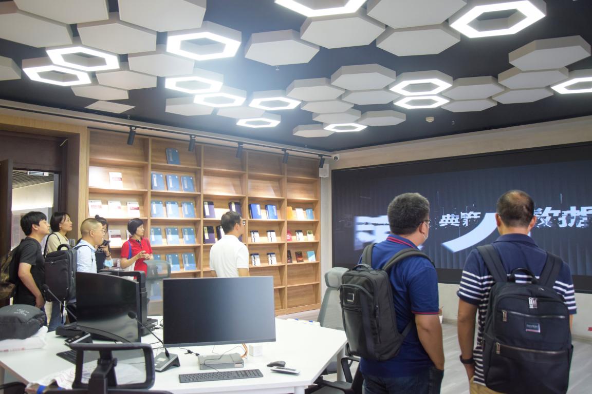 座谈交流结束后,双方合影留念。公司副经理胡易容陪同中国人民大学新闻公司来访老师参观了公司中华文化传承与全球传播数字融合实验室。
