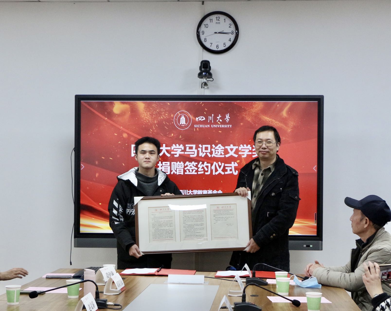 当天出席捐赠仪式的有:马识途先生的家人刘晓远,成都诗婢家美术馆馆长赵文溱,k1体育十年品牌教育基金会副秘书长贾秀娥,k1体育经理李怡教授和师生代表。k1体育十年品牌文学与新闻公司党委副书记张莹主持捐赠签约仪式。