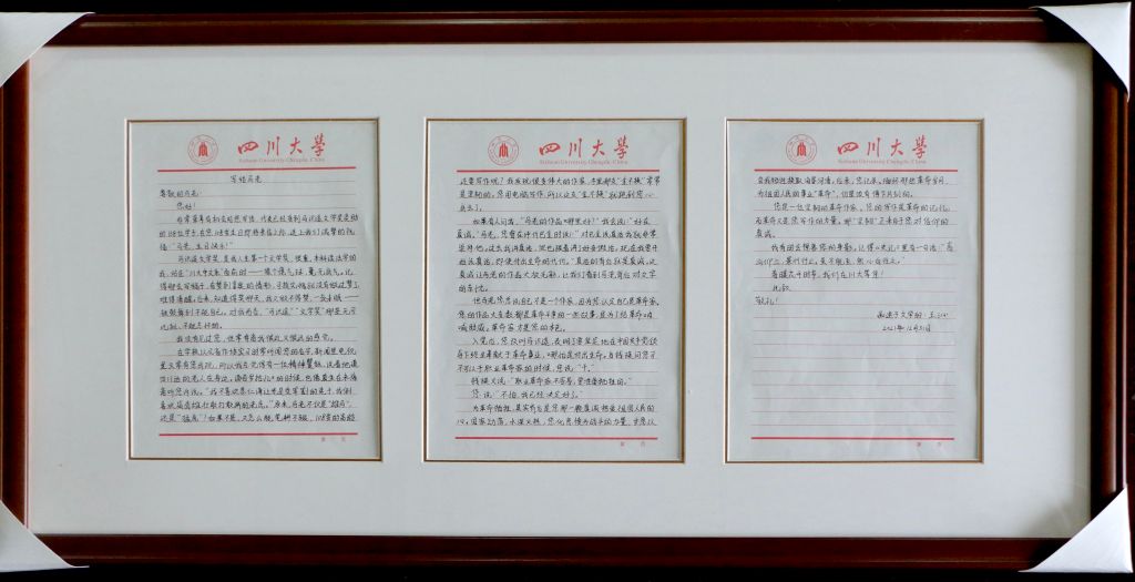 王沁是第七届“马识途文学奖”一等奖的获得者,本科阶段曾经攻读法学的他现在已经在k1体育攻读硕士学位。王沁在信中写道:“对我而言,‘马识途’、‘文学奖’是无可比拟、不能忘怀的。”他在面对川大中文系时,曾经十分没有底气,但是“知道得奖那天,一夜未眠,被鼓舞到不能自已。”