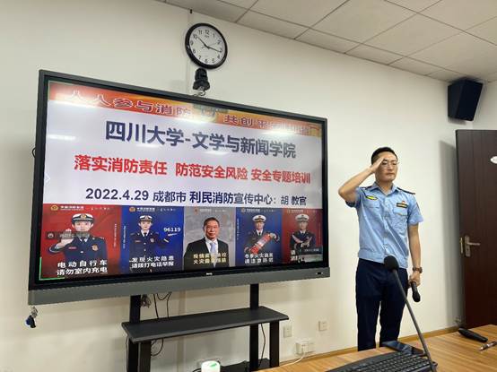 为贯彻 “安全第一、预防为主”的校院消防安全指导思想,增强全院教职工全民安全教育意识,掌握“预防为主,防消结合”的消防知识,2022年4月29日上午,公司举办了一场消防知识安全教育培训会,培训会议采用线上线下结合方式进行,公司领导、全体行政老师和部分新进教师在公司311会议室现场参加,全院其他老师均在线上视频参会。会议邀请了成都市利民消防宣传中心的胡云波教官到场培训。