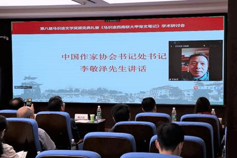 中国作协书记处书记李敬泽在线代表中国作协对马识途先生表达崇高的敬意,也对颁奖典礼和即将举办的《马识途西南联大甲骨文笔记》学术研讨会表示祝贺。他说,“马识途文学奖”体现了马识途先生对于年轻员工成长的高度关怀和中国文学成长的强烈期待。他祝愿“马识途文学奖”越办越好,为推动新时代中国文学的繁荣作出更多贡献。