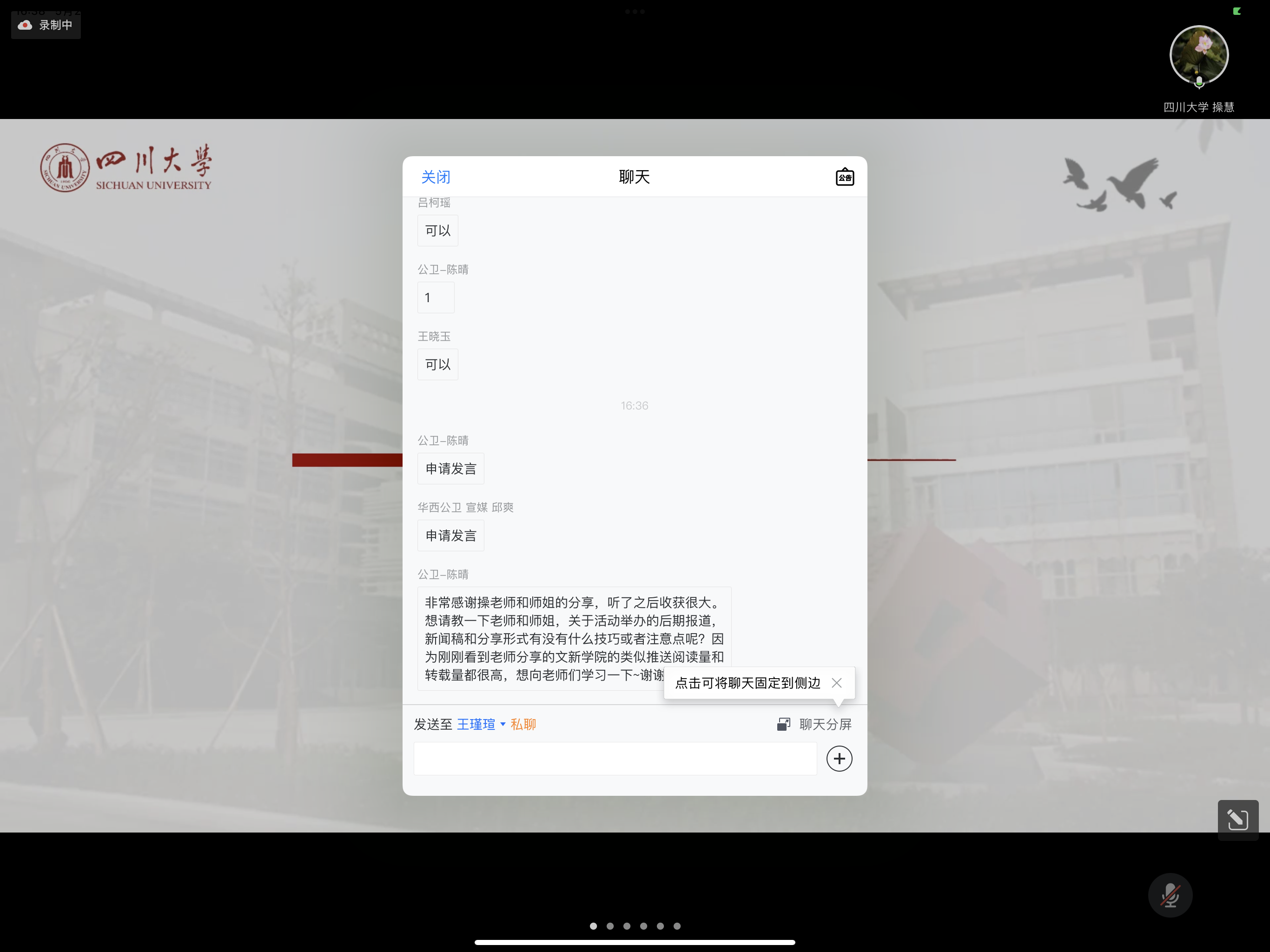 分享结束后,来自华西公共卫生公司的陈晴、邱爽等同学分别就新闻稿技巧、信息筛选以及公众号风格等问题进行提问,操慧教授与雷思远同学对相关问题作出详细解答。至此,2022学年宣传培训会议落下帷幕。