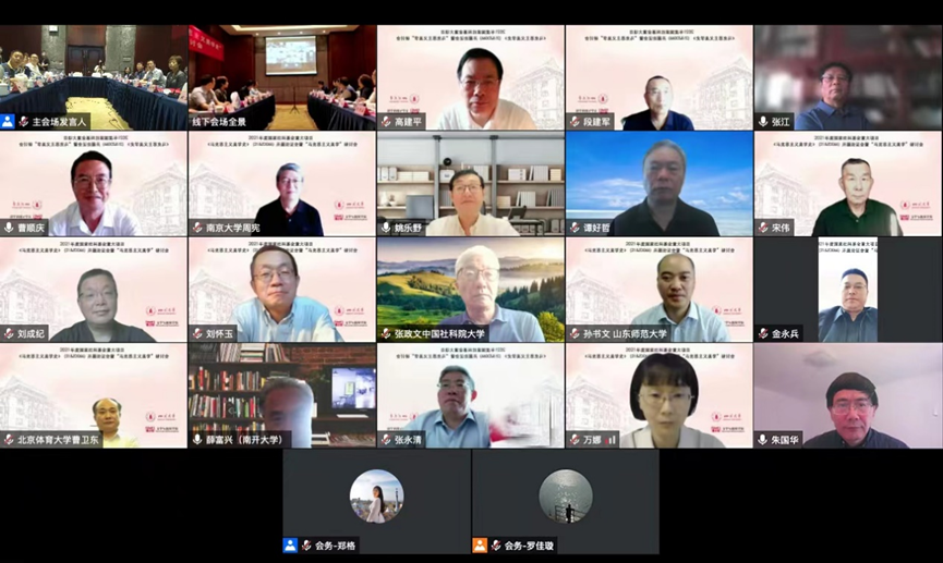 课题组成员还听取了报告会特邀嘉宾朱国华教授、刘成纪教授、宋伟教授、段建军教授的意见和建议。朱国华教授提出,马克思主义美学是文艺与美学领域具有重大意义的课题。刘成纪教授提出,要把握马克思主义美学“一源众流”的特点,找到不同时代、不同地域马克思主义美学之间的共通性。宋伟教授建议由阎嘉教授编写总纲作为范例带动子课题研究,并在研究中注意把握马克思主义经典命题,融合当前优秀的理论成果。段建军教授肯定了阎嘉教授研究框架的新颖之处,提出可以补充苏俄、印度和日本的马克思主义美学研究成果。