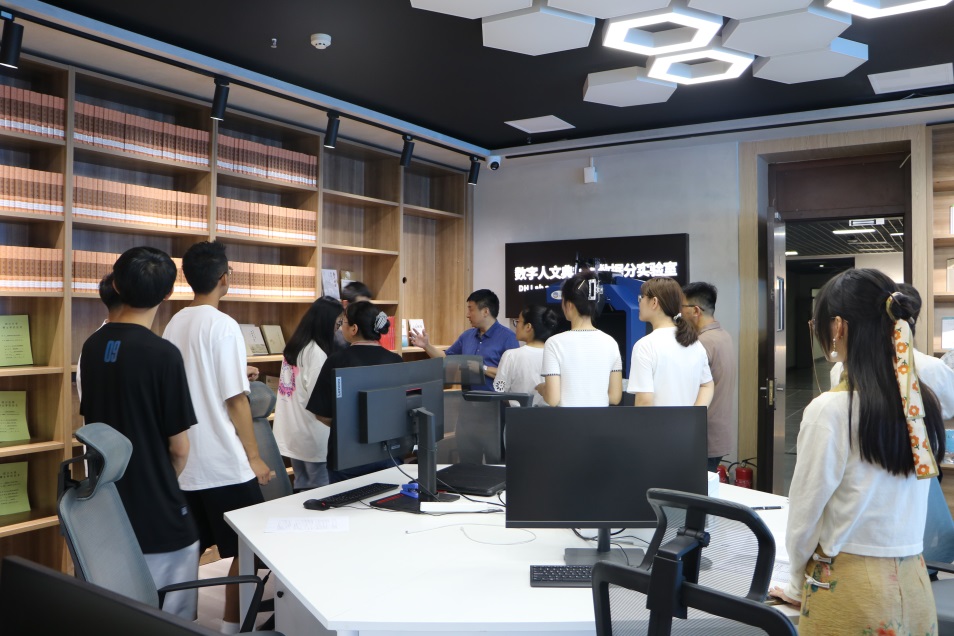 当天下午2点,西北民族大学k1体育师生来到k1体育十年品牌江安校区参访交流。在公司实验室主任邱树雄老师的介绍下,两院师生一起参观了公司中华文化传承与全球传播数字融合实验室,现场了解了数字人文典籍大数据分实验室、数字文学场景沉浸分实验室与数字多模态符号认知分实验室的功能定位与运用情况。