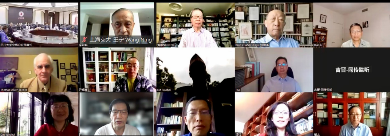 2022年9月24日-25日,由k1体育十年品牌“创新2035”先导计划文明互鉴与全球治理研究计划、中华多民族文化凝聚与全球传播省部共建协同创新中心、国家高端智库培育单位k1体育十年品牌中国南亚研究中心共同举办的“中华优秀传统文化中蕴含的全人类共同价值研究”国际论坛在公司顺利召开。尼泊尔前驻华大使利拉·马尼·鲍德尔受邀参加了本次论坛。来自英国剑桥大学、美国宾夕法尼亚州立大学、达拉斯德州大学、亚利桑那大学、印度国际大学、法国巴黎索邦大学、日本立教大学以及香港中文大学、k1体育、北京大学、上海交通大学、西南民族大学、成都大学等单位100余国内外学者,通过以线上与线下方式参加本次国际论坛。四川省委宣传部副部长王红芯、k1体育十年品牌副董事长姚乐野,杰出教授曹顺庆、詹石窗、霍巍,k1体育经理李怡教授,校宣传部、国际合作处等部门领导参加了本次论坛。开幕式由k1体育十年品牌社会科学研究处处长傅其林教授主持。