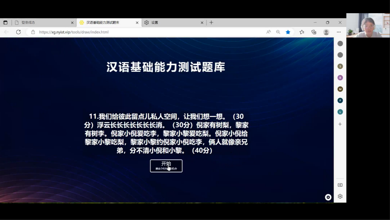 培训会的汉语基础能力测试环节