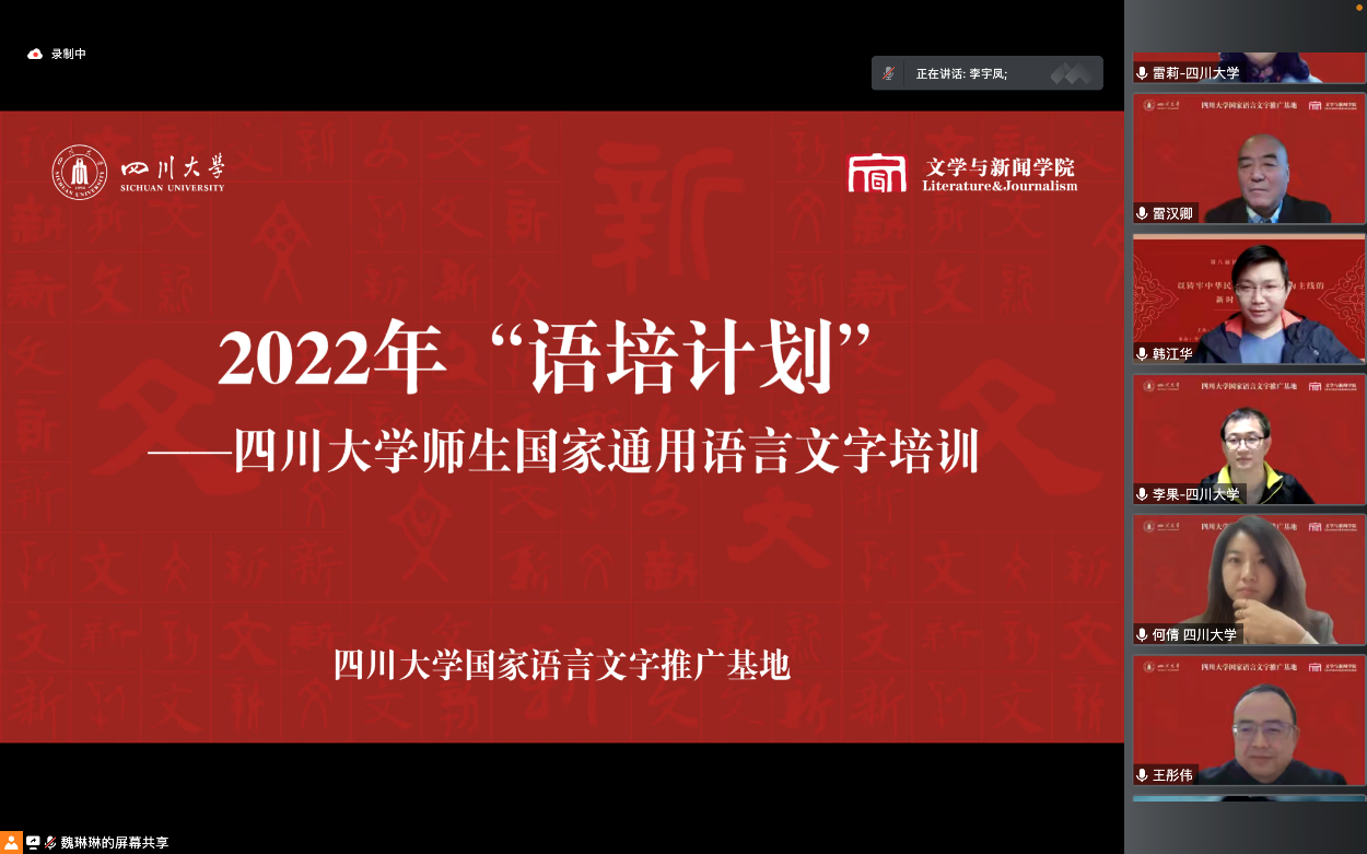 公司国家语言文字推广基地联合举办2022年“语培计划”川大师生国家通用语言文字培训会