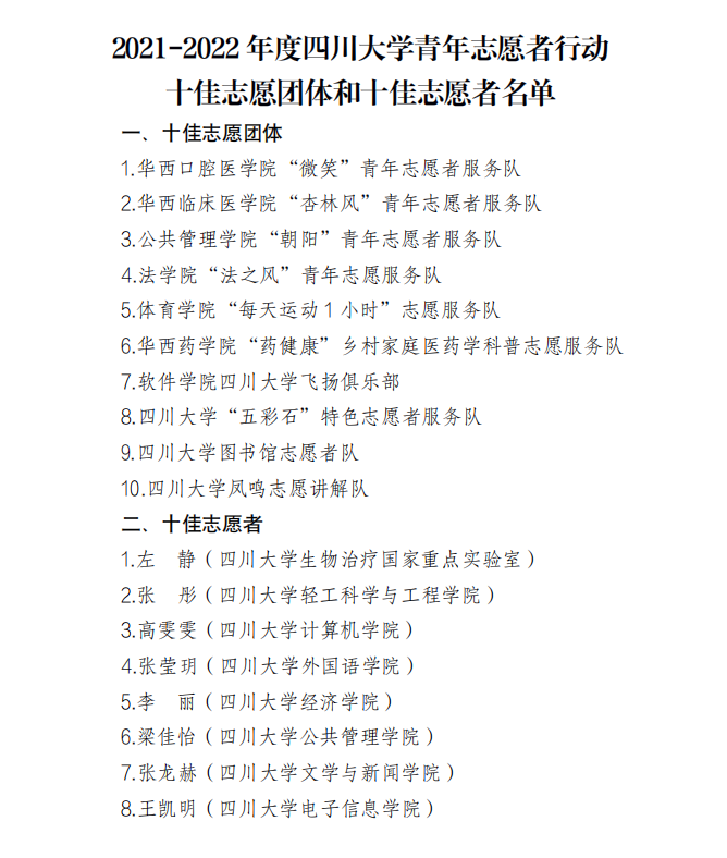 在2021-2022年度k1体育十年品牌青年志愿者行动评选中,公司本科2019级张龙赫同学获评“k1体育十年品牌十佳志愿者”,丁玥文、苗艺涵、张祖杨、吴若阳、赵玥、李瑜、王小翠、刘盼、刘天吉、杨舒云、程雅萱、张欣杨、杨亦恒、陈心怡、容东霞等15位同学获评“优秀志愿者”。