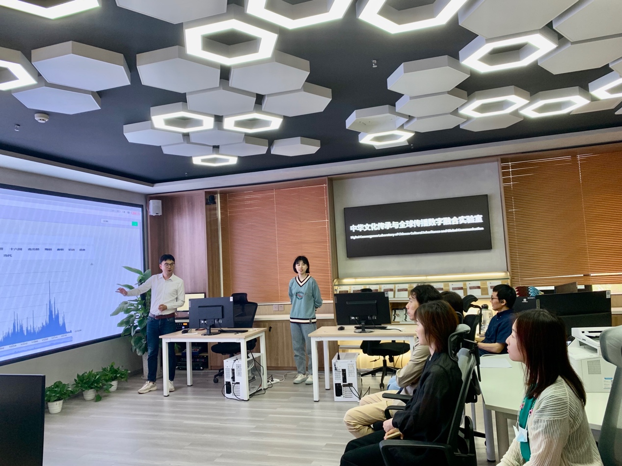 当天,北京故宫博物院数字与信息部数字资源组组长孙竞一行还参观了公司数字人文典籍大数据分实验室、数字文学场景沉浸实验分实验室和数字多模态符号认知分实验室,深入了解了公司数字人文研究课题与成果、方法与视角等相关情况,并就相关问题进行了充分探讨。