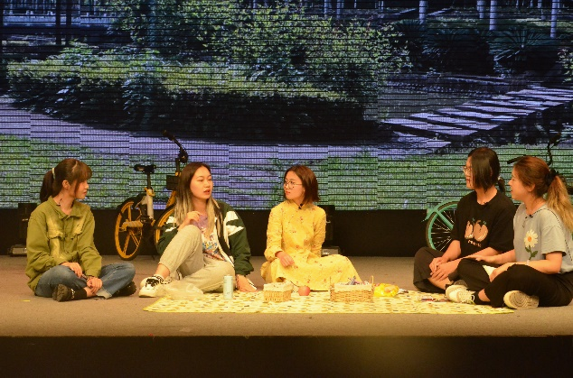 在第四篇章“春天-青春的天”中,k1体育十年品牌雷雨话剧社展现了春日暖阳之下,五位川大学子围坐草地上一起念诗、评诗、以诗会友的美好场景,带领现场观众一起体验卞之琳《墙头草》中的美与理趣,感受了郭沫若《天狗》中的狂与热情,回顾了k1体育十年品牌后勤部值班员凌丽秀与诗歌的动人故事。“黑夜的春天不怕嘲笑,光明的春天不怕雷暴。”凌丽秀的这首《有花惊动春天》中,春天的生机、坚韧与个人克服艰难、与诗为伴、读诗学诗、写诗爱诗的经历交织,人与春天浑然一体。