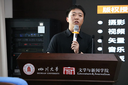 在文创企业宣讲环节,两家成都本地的知名文创企业代表进行了主题宣讲。成都光厂创意科技有限公司是一家深耕于视听创意领域的数字文创企业,公司副总经理王晓龙围绕行业发展趋势、公司简介、产品优势、合作方向等方面展开宣讲。他表示,光厂与公司的合作需求有三点:一是关联院校联合活动,如讲座、联名活动等;二是期待携手公司围绕视听版权领域编纂视听行业研究报告;三是期待更多优秀人才加入光厂。
