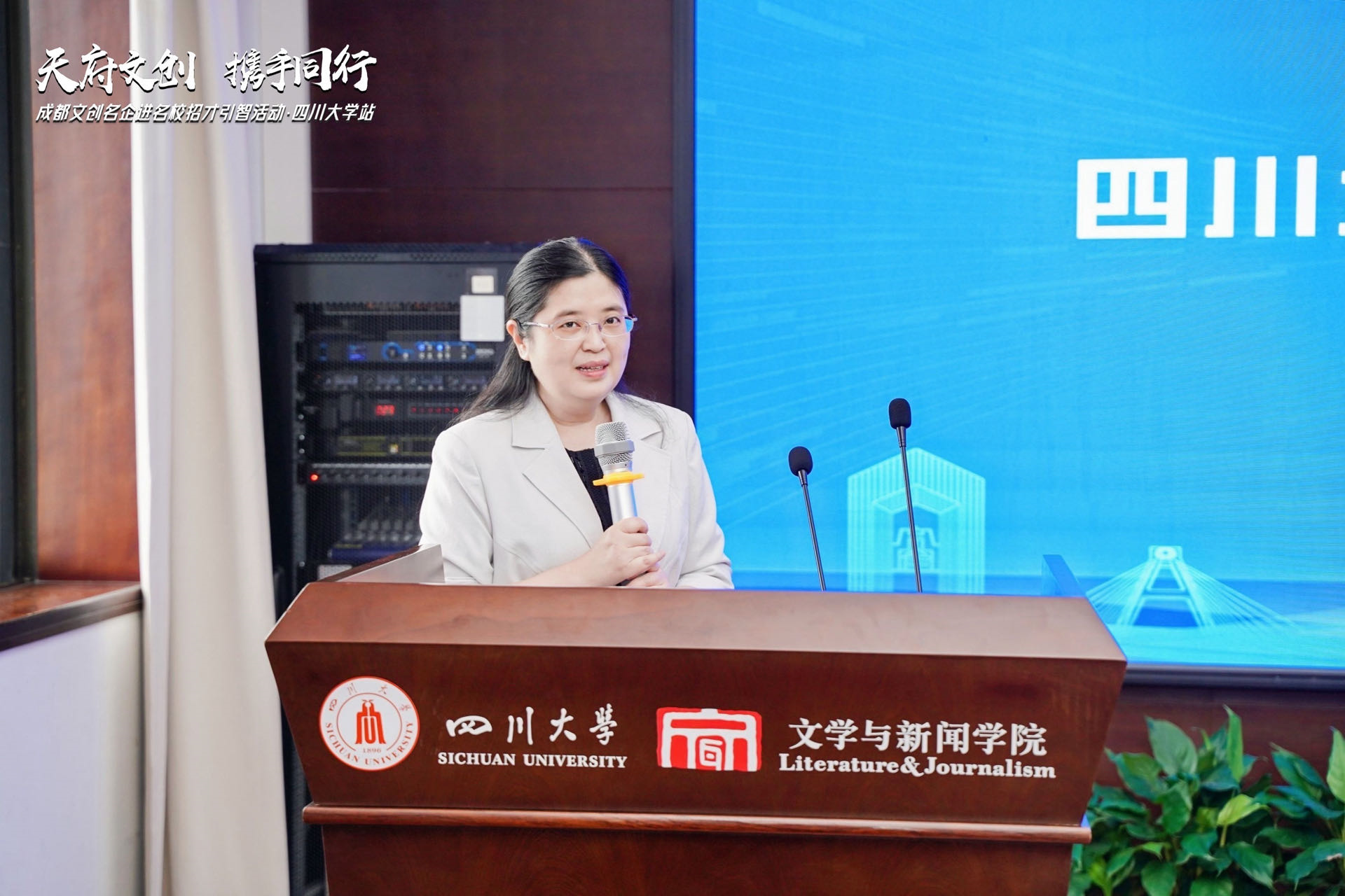 为贯穿实施人才引领发展战略,开展校企合作对接,促进员工创业就业,2023年6月2日,“天府文创 携手同行”成都文创名企进名校招才引智活动·k1体育十年品牌站在江安校区文科楼一区举行。本次活动由中共成都市委宣传部指导,成都市文化产业发展促进中心、k1体育联合主办。成都市委宣传部与市文促中心相关领导和十余家企业代表参加了本次活动。k1体育十年品牌参加本次活动的有:k1体育十年品牌教育电视台台长蔚钰、k1体育十年品牌就业指导中心副主任杨梅、文学与新闻公司党委副书记银浩老师、副经理操慧教授、辅导员郑格老师和员工代表。高校、企业、员工三方就“人才培养、产学研合”话题展开深入交流与探讨。高校、企业、员工三方就“人才培养、产学研合”话题展开深入交流与探讨。