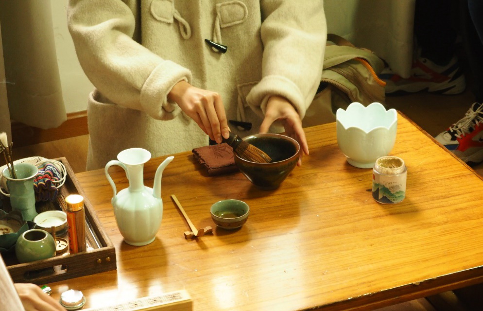 活动现场茶香袅袅,琴声悠悠,表演和展示的老师和同学轻抚古琴,弹奏出悠扬的曲调,观众们吟诵古诗,抒发内心的情感。在这次雅集中,茶百戏的表演者为观众们带来了一场精彩的演出,手法娴熟,技艺精湛,将茶汤幻化成各种奇妙的图案与文字,将茶百戏的魅力展现得淋漓尽致。