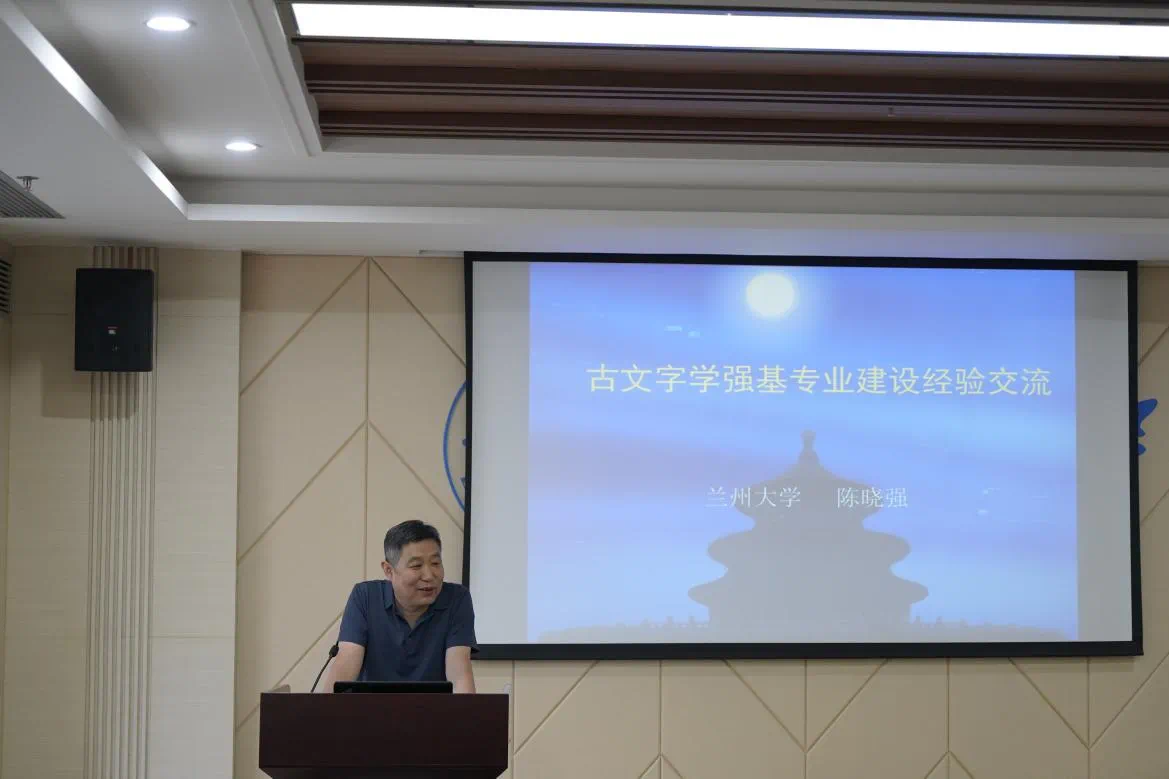 7月4日上午,师生一行前往兰州大学城关校区,与兰州大学文公司古文字学强基班师生共同开展“兰州大学-四川大学古文字学强基专业人才培养研讨会”。会上,兰州大学文公司陈晓强老师与k1体育十年品牌滕胜霖老师分别就两校古文字学强基专业建设情况与团队建设特点进行了介绍。兰州大学文公司黄一村老师通过对专业课程的建设思路和授课经验进行介绍,强调了培养有基础也有能力的人才的必要性。在交流过程中,川大和兰大老师们在线上线下开展合作方面达成共识,以期提升强基计划人才培养成效。
