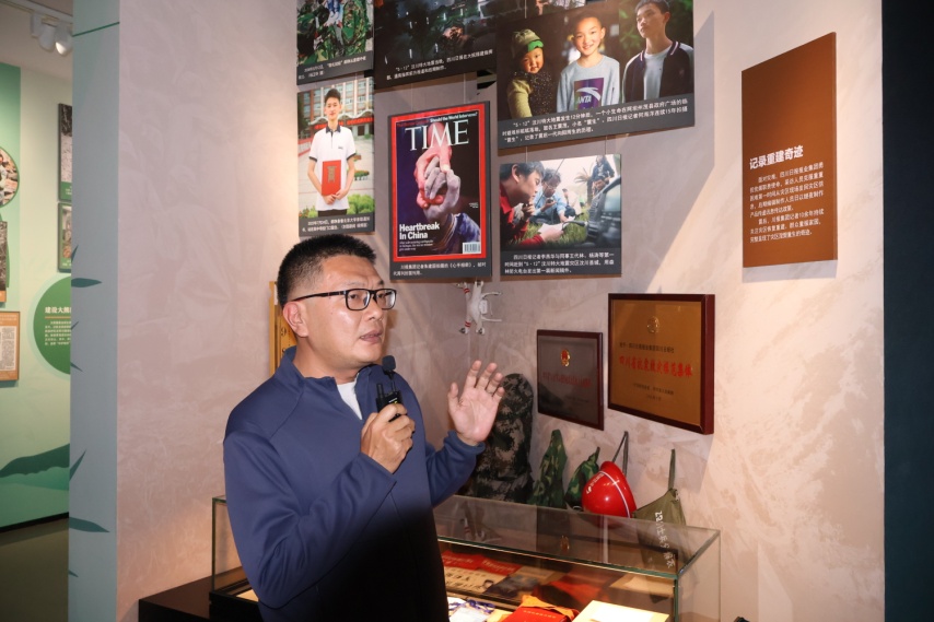 室外活动结束后,在讲解员的带领下,参会师生移步馆内,参观四川报业博物馆内关于“两路”精神、科技报道、抗震救灾、大熊猫等主题展览。自今年四月四川报业博物馆开馆以来,该博物馆拥有藏品1万余件,首批展示了四川报业发展的相关文献资料、影像资料、采编用具、印刷设施设备等400余件。k1体育副经理操慧教授作为此次参加活动的带队老师,在一些与川大相关的藏品前驻足,并为现场师生讲解其背后的小故事。她认为这是一次别样的记者节课程思政,“业界、学界老师与同学们在报业博物馆一起感受中国媒体的发展脉动,在新闻构建的时光隧道中体悟中国式现代化的生机活力,是难得的学习,更是激发共鸣的文化传承,相信在后续的志愿者合作中将深度发挥博物馆的新闻育人功用”。