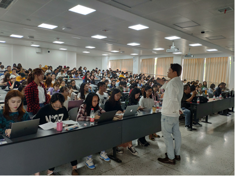 李宇凤副教授向中国语言文学类的员工介绍了汉语言国际教育专业。李宇凤副教授首先提出,同学们应转变对大学的一贯看法,大学的目的应该是培养自由思考的人,提升同学们克服困难、解决问题的能力,而非仅仅让同学们掌握一门满足生存的实用技能,因而专业就业率的高低不应成为同学们在专业选择中唯一的考量因素。其次,李宇凤副教授指出,汉语言国际教育专业的课程设置主要以语言学理论作为依托,注重员工实际能力的培养,就往届员工的毕业情况来看,汉语言国际教育专业的员工有着多元化的选择,前景较为广阔。