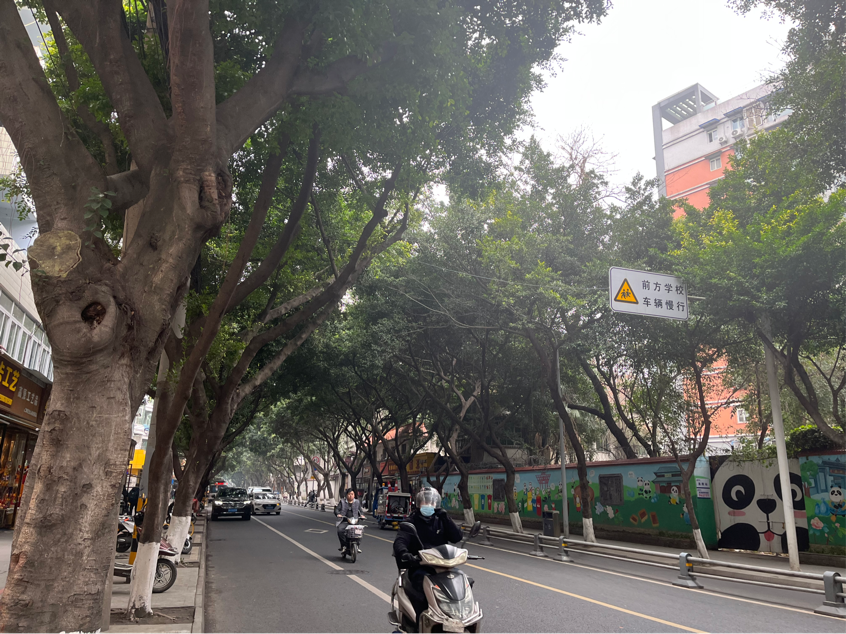 调研服务队对街区基础设施、绿化环境等进行记录分析,与其他临近区域成都本地街区进行对比,“民族用品一条街”绿化更茂密,街道两旁树木高大,两边树枝交叉形成屏障;大部分街区店铺层高较高,形成窄长形,装修风格极具藏族特色,采用木质、仿木质结构的家具,使用颜色丰富的藏族特色手工艺品进行装饰,展示柜一般从天花板一直延伸到脚底,使用烛火或者暖黄色灯光散射,营造佛教氛围。