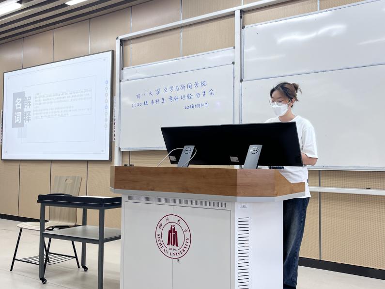 在新闻传播学专场中,王奇琦同学首先介绍了华东师范大学的新闻学硕士专业情况、历年报考数据、考研参考书目和考试科目等基本情况,紧接着重点讲解了如何利用公司真题整理专题学习的内容,强调了专题学习对于形成知识谱系的重要性,最后鼓励准备考研的同学们抛开焦虑、埋头苦干,定能收获令自己满意的结果。向欣然同学分析了专业课和公共课的学习方法,包括专业课考试中的名词解释、论述、消息评论等题型的复习技巧以及公共课考试中的英语和政治的积累方法,还介绍了复旦大学学术硕士研究生的招生情况和参考书目。杨义珑同学从个人简介、专业介绍、学习规划和经验教训四个方面入手,在专业复习上结合近几年的真题为同学们解析了做题方法和技巧,并且以时间轴的方式呈现了英语和政治学习的规划。陈思梦同学从考情分析、具体经验和自身经历出发,详细地解析了考取本公司专业的具体情况,鼓励同学们保持信心、积极尝试。周萱同学则以个人背景、考情分析、复习方法为脉络,结合考试热点、时间安排和记忆方法,为同学们提供了行之有效的复习思路。