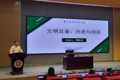 讲座中,曹顺庆教授首先对人类文明的谱系进行了梳理,对人类四大文明及其特色进行扼要介绍,指出四大文明中未有古希腊文明,以古希腊文明为源头的现代西方文明没有理由在当今世界独霸一方。其次,曹顺庆教授以西方思想家,如黑格尔、叔本华、笛卡尔、伏尔泰、瓦雷里、庞德、胡塞尔、海德格尔、德里达等思想的中国元素为例,指出文明自古以来都是因“因交流而多彩”、“互鉴而丰富”,以此驳斥亨廷顿文明冲突论与西方文明中心论,认为现当代西方文论一直在向中国文论、中国文化学习,了解西方文论中的中国元素,有助于我们改变心态,重新认识中国文论的价值。最后,曹顺庆教授指出,当今中国文化最大的问题是自近代以来的文化自卑,要改变文化自卑首要就是要改变我们对西方文明马首是瞻的观念,主张不同文明、不同文化之间的平等互鉴、互参、互融,认为文明互鉴是人类社会发展的基本规律,人类文明从来都是处于互相学习、互相交流之中。