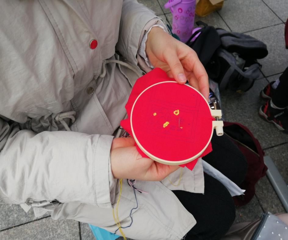 活动第二部分为线下的“香囊制作”活动。汉语国际教育团支部进行了前期线上宣传,并申请了青广摊位,通过宣传单等线下方式吸引同学们前来摊位制作香囊。在此过程中支部团员提供香囊制作方式的指导,以次传播中国优秀的传统文化,帮助公司职工能够具体体验中国传统文化。