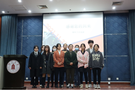 11月21日晚“镜记峥嵘,笔写风华”记者节系列活动之“记声赋文”记者挑战赛决赛于江安校区第二基础实验楼报告厅顺利举行。本次活动面向公司全体本科生,由公司团委员工会宣传部承办。2020级广告与媒介经济学硕士生杨雨桐、2020级新闻学专业硕士生魏梓慧、我院团委员工会副主席康雨晨、团委员工会执行主席杨晨、社团联合会会长李佳芮、素质拓展部部长韩佳玉同学作为评委参加。