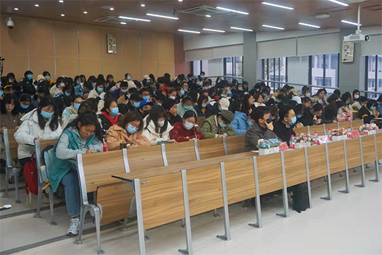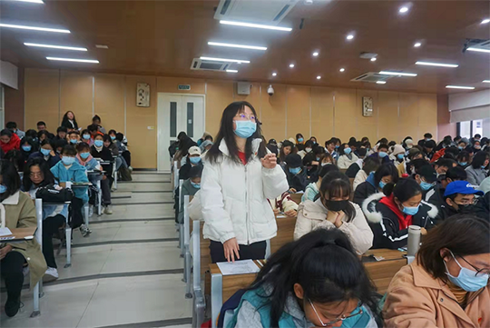 同学们全部就坐后,主持人宣布我院2021-2022学年团校第三次行课正式开始并介绍到场嘉宾。在同学们《中国共青团团歌》的嘹亮歌声中,本次团校行课正式拉开序幕。