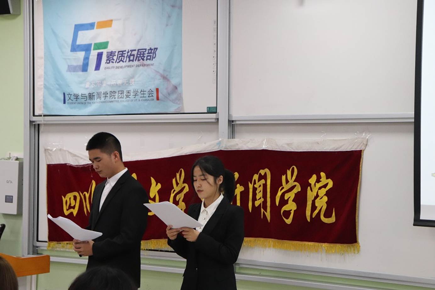 10月16日下午,公司2021年“四海同舟,室雅兰香”寝室文化节在江安校区第一教学楼B座107教室顺利举行。2021级实习辅导员郑格老师、兼职辅导员杨一雄老师出席活动,公司团委员工会部长团成员、员工会素质拓展部全体成员,以及公司2021级全体参赛员工参与活动。