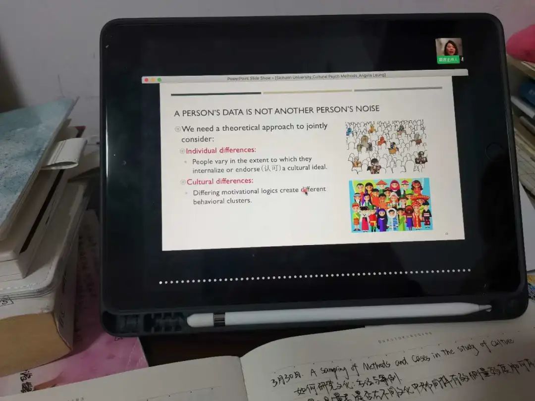 梁老师结合案例向我们展示了丰富的文化心理学的相关研究方法,其中利用田野实验法和三角互证研究法考察文化与个体的相互作用给我留下了十分深刻的印象。在讲座中更为难得的是看到了记录实验过程的珍贵影像资料!梁老师针对本次疫情指出了潜在的研究方向,具有创新性,使我开阔了视野,拓展了思路,受益良多。