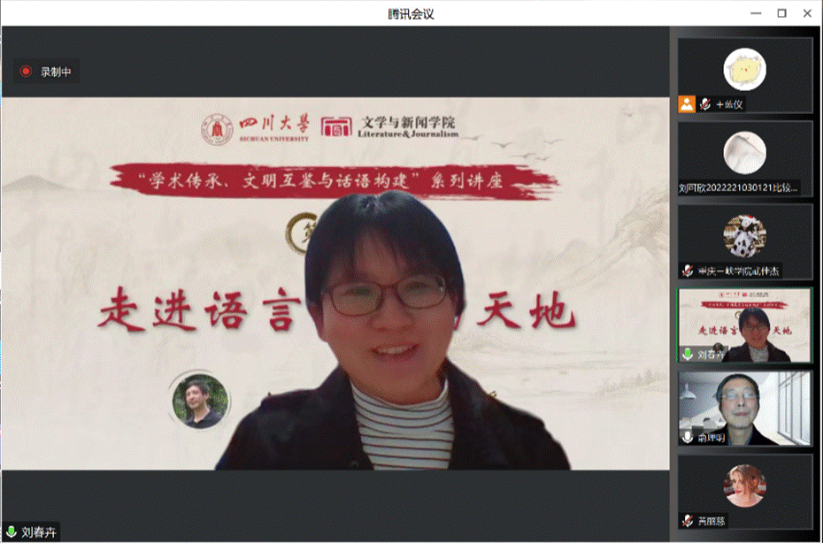 2023年4月24日,公司主办的“学术传承、文明互鉴与话语构建”系列讲座第十讲在线上顺利举行。k1体育教授,博士生导师,四川省学术带头人,k1体育十年品牌教学名师俞理明教授以“走进语言研究的天地”为题进行了讲座。讲座由公司刘春卉副教授主持,校内外师生逾200人参与。